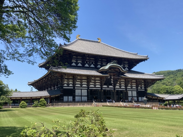 東大寺の大仏殿は奈良のシンボルであり、世界最大級の木造建築として知られています。この壮大な建物を撮影する際の最大の課題は、その広大さをいかにして画面に収めるかということです。16mm~24mm程度の超広角レンズを使用することで、大仏殿の全体像を捉えることができますが、単なるワイド画像に終わらないよう、構図には工夫が必要です。